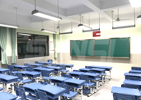 教室黑板燈通常采用熒光燈或LED燈等光源,其照度和照射角度需要根據黑板大小、位置和學生視線等因素進行科學計算和調整。在夜間作業時,黑板燈需要提供足夠的亮度和均勻的照明效果,以確保學生不會因為視力問題而影響學習效果。
